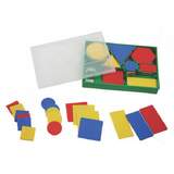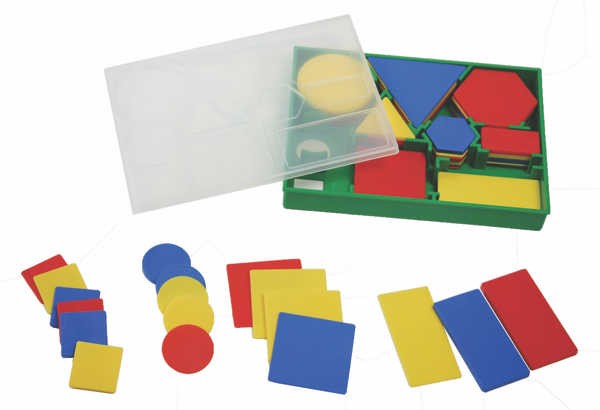 With the attributes of size, shape, colour and thickness, they assist in the development of problem solving using logic. The related sizes make them useful for demonstrating fractions and their relationships. Set contains 60 desk-sized plastic blocks in 5 shapes, 2 thicknesses, 2 sizes and 3 colours.
