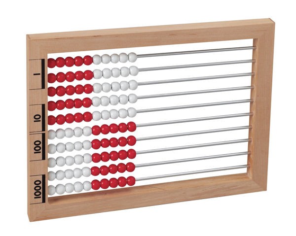 This high quality wooden abacus is designed to allow students to perform basic operations and learn strategies for math. The red and white beads are grouped in fives and tens and one side is marked with 1000, 100, 10 and 1.