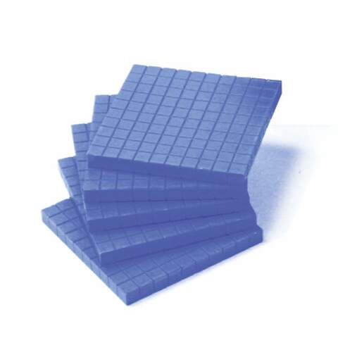 Flats are 10cm X 10 cm and represent 100s. They only interlock in one direction. The blocks can be linked by stacking them together.