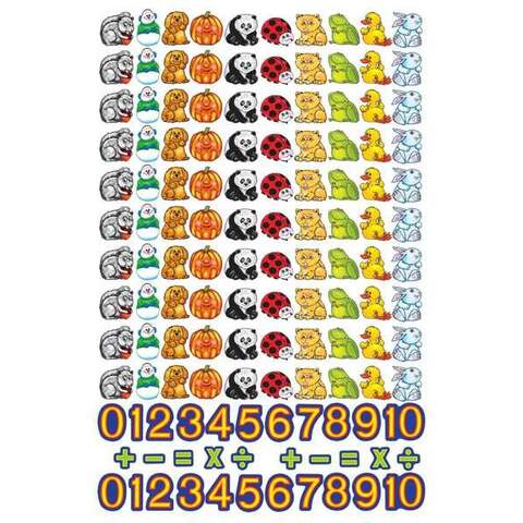 These felt sets are printed in brilliant colours on heavy quality felt for lasting durability in the hands of many children! Great for: sorting, matching, counting, talking about differences, tactile development, memory matching games, visualizing math equations and much more. 10 each of 10 2½ inch figures such as ladybugs, panda bears, puppies, etc., two sets of numerals 1 to 10, math symbols, and a 12 page lesson guide are included. 132 pieces in total.