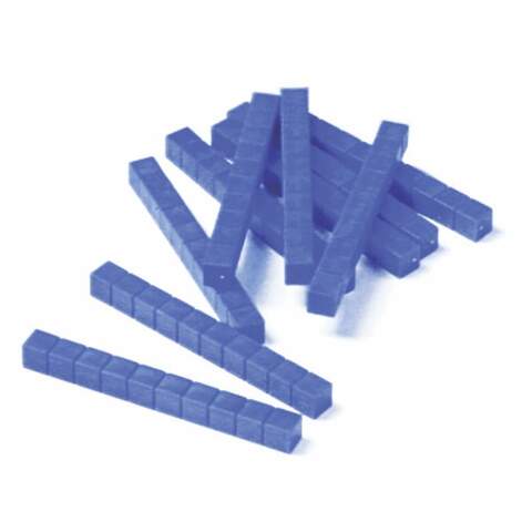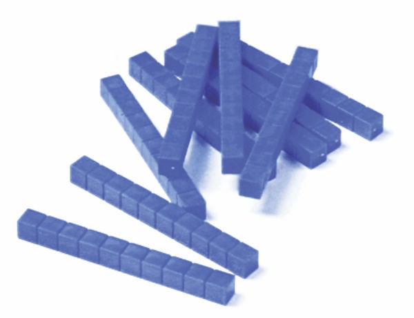 Rods are 1 cm X 10 cm and represent 10s.They only interlock in one direction. The blocks can be linked by stacking them together.
