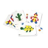 Set of 20 full colour exploration cards for use with pattern blocks. Each card contains a picture to be reproduced using blocks and is labelled as an object, animal, fruit, etc. These can be used to aid in teaching how different shapes, when used together, can create geometric shapes and patterns.